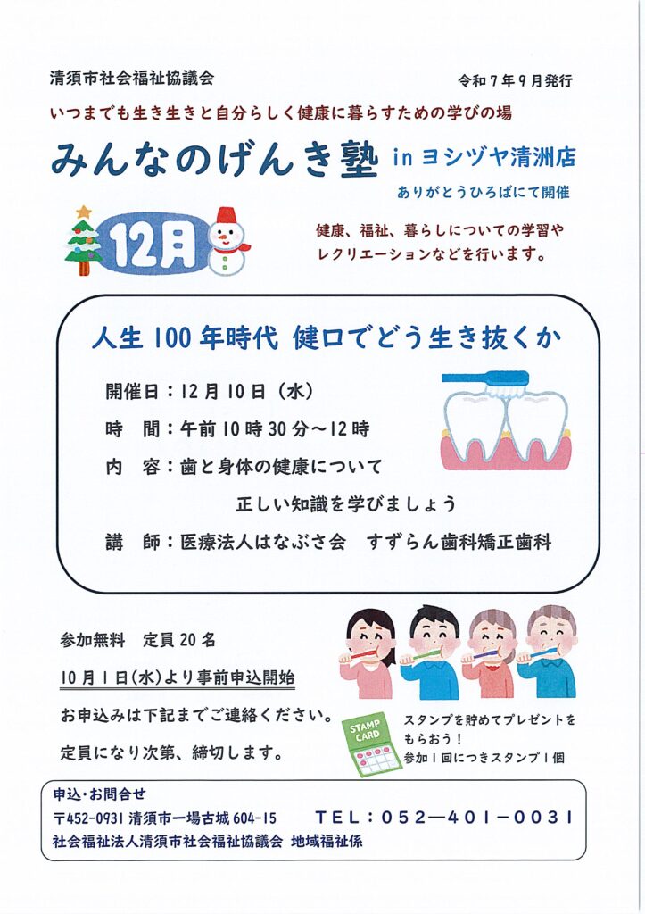 みんなのげんき塾inヨシヅヤ清洲店 ~いつまでも生き生きと自分らしく健康に暮らすための学びの場~