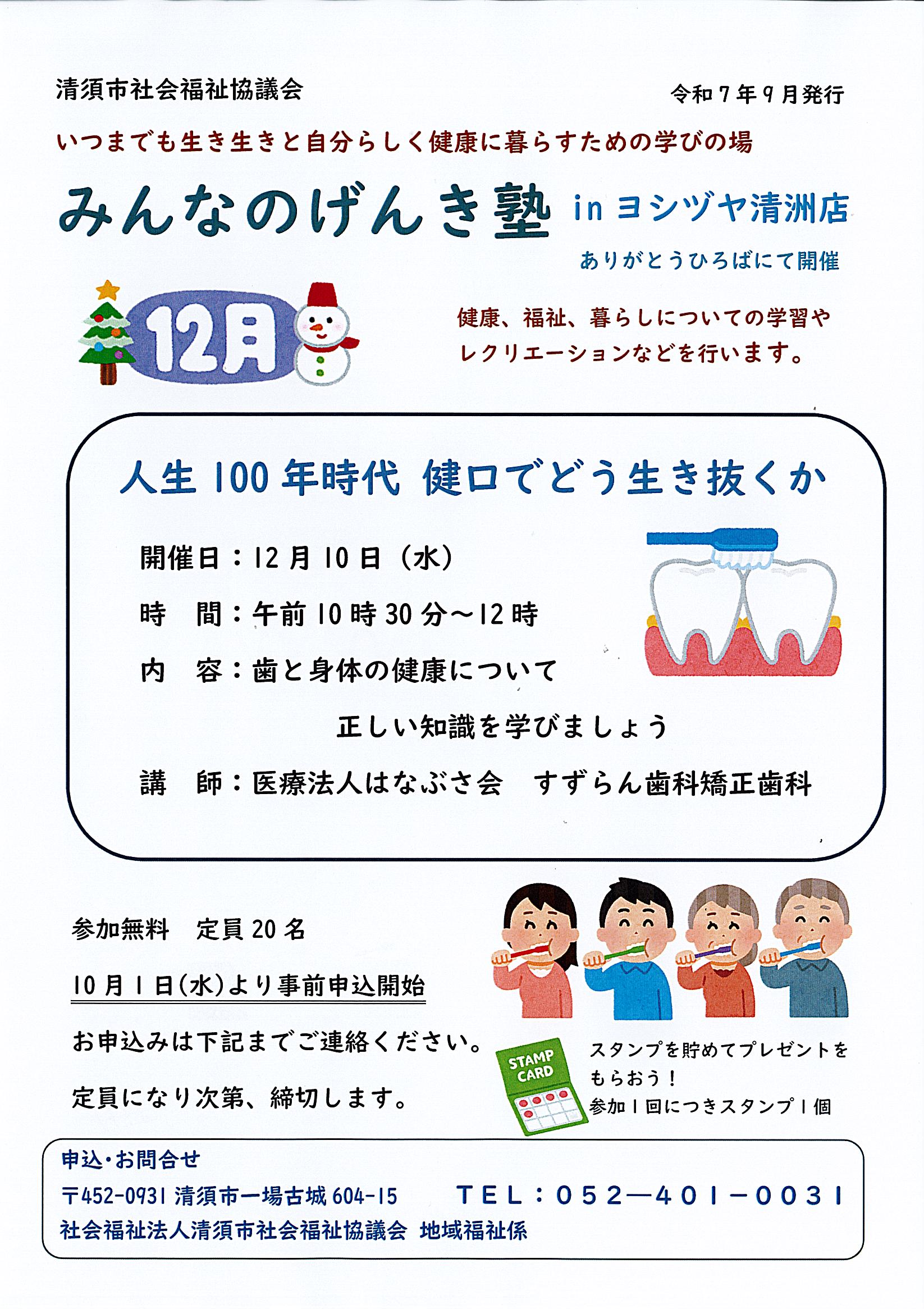 みんなのげんき塾inヨシヅヤ清洲店 ~いつまでも生き生きと自分らしく健康に暮らすための学びの場~
